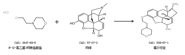 1.通过N-(2-氯乙基)吗啉盐酸盐和吗啡合成福尔可定