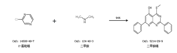 1.通过2-氯吡嗪和二甲胺合成二甲胺嗪,收率约94%;