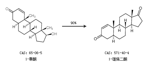 1.通过1-睾酮合成1-雄烯二酮,收率约90%;
