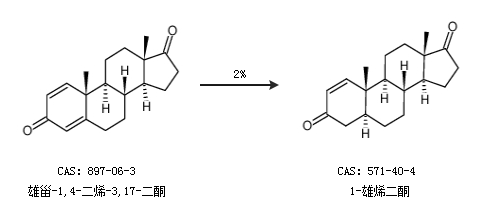 2.通过雄甾-1,4-二烯-3,17-二酮合成1-雄烯二酮,收率约2%;