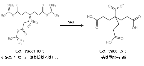 1.通过4-硝基-4-(2-叔丁氧基羰基乙基)庚二酸二叔丁酯合成硝基甲烷三丙酸,收率约96%;