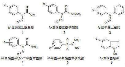 N-亚硝基化合物的分子结构通式R1(R2)=N-N=O,分N-亚硝胺和N-亚硝酰胺,N-亚硝胺的R1和R2为烷基或芳基;N-亚硝酰胺的R1为烷基或芳基,R2为酰胺基,包括氨基甲酰基、乙氧酰基及硝米基等;两类都可有杂环化合物。N-亚硝基化合物的生产和应用并不多,但前体物亚硝酸和二级胺及酰胺广泛存在与环境中,可在生物体外或体内形成N-亚硝基化合物。在城市大气、水体、土壤、鱼、肉、蔬菜、谷类及烟草中均发现存在多种N-亚硝基化合物。多为液体和固体,主要经消化道进入体内。属高毒,对实验动物经口LD50为150-500mg/kg(体重)。急性毒性:N-亚硝胺主要引起肝小叶中心性出血坏死,还可引起肺出血及胸腔和腹腔血性渗出,对眼、皮肤及呼吸道有刺激作用;N-亚硝酰胺直接刺激作用强,对肝脏的损害较小,引起肝小叶周边性损害。已发现约200种N-亚硝基化合物对实验动物小鼠、大鼠、豚鼠、兔、狗、猪、猴及鱼等有致癌性,以啮齿动物最敏感。染毒方式有吸入、气管注入、经口、皮下注射及静脉注射,也有将亚硝酸盐及胺等分别混于饲料及饮水种喂养动物。经口每日剂量1mg/kg(体重)或更少即可致癌,如一次给以较大剂量即可于9-12月后诱发癌肿,并发现有经胎盘致癌作用。一些N-亚硝基化合物致癌的靶器官见附表。亚硝胺是间接致癌物,亚硝酰胺是直接致癌物,终致癌物可能是碳鎓离子和偶氮烷烃。N-亚硝基致癌化合物在多种致突变试验出现阳性结果,还有致畸及胚胎毒性。流行病学调查发现,N-亚硝基化合物的摄入与人类胃癌和食道癌的发生有关,但证据尚不充分。