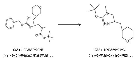 1.通过((s)-2-(((苄氧基)羰基)氨基)-3-((r)-四氢-2H-吡喃-3-基)丙基)(甲基)氨基甲酸叔丁酯合成((s)-2-氨基-3-((r)-四氢-2H-吡喃-3-基)丙基)(甲基)氨基甲酸叔丁酯