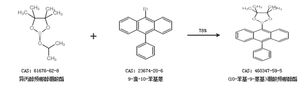 1.通过异丙醇频哪醇硼酸酯和9-溴-10-苯基蒽合成(10-苯基-9-蒽基)硼酸频哪醇酯,收率约78%;