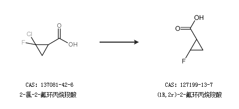 1.通过2-氯-2-氟环丙烷羧酸合成(1R,2r)-2-氟环丙烷羧酸
