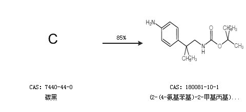 1.通过碳黑合成(2-(4-氨基苯基)-2-甲基丙基)氨基甲酸叔丁酯,收率约85%;