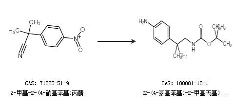 2.通过2-甲基-2-(4-硝基苯基)丙腈合成(2-(4-氨基苯基)-2-甲基丙基)氨基甲酸叔丁酯