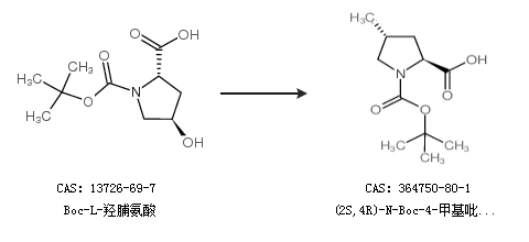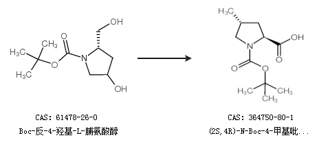 2.通过Boc-L-羟脯氨酸合成(2S,4R)-N-Boc-4-甲基吡咯烷-2-甲酸
