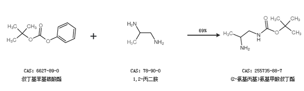 2.通过叔丁基苯基碳酸酯和1,2-丙二胺合成(2-氨基丙基)氨基甲酸叔丁酯,收率约69%;