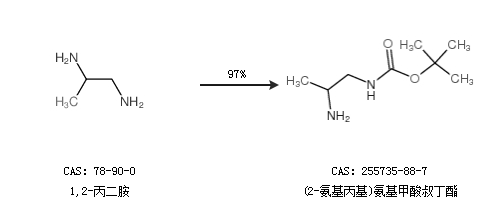 1.通过1,2-丙二胺合成(2-氨基丙基)氨基甲酸叔丁酯,收率约97%;