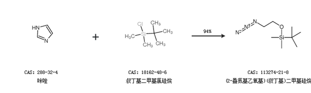 2.通过咪唑和叔丁基二甲基氯硅烷合成(2-叠氮基乙氧基)(叔丁基)二甲基硅烷,收率约94%;