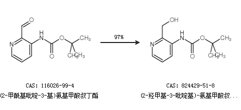2.通过(2-甲酰基吡啶-3-基)氨基甲酸叔丁酯合成(2-羟甲基-3-吡啶基)-氨基甲酸叔丁酯,收率约97%;