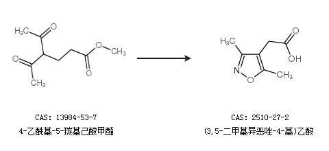 2.通过4-乙酰基-5-羰基己酸甲酯合成(3,5-二甲基异恶唑-4-基)乙酸