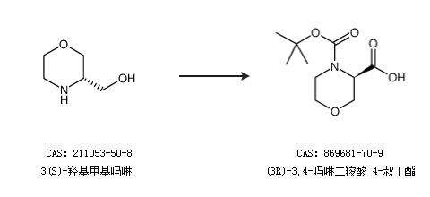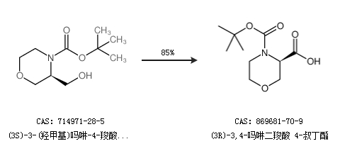 1.通过(3S)-3-(羟甲基)吗啉-4-羧酸叔丁酯合成(3R)-3,4-吗啉二羧酸 4-叔丁酯,收率约85%;