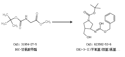 1.通过BOC-甘氨酸甲酯合成(3R)-3-{[(苄氧基)羰基]氨基}-4-(羟基甲基)吡咯烷-1-羧酸叔丁酯