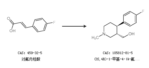 1.通过对氟肉桂酸合成(3S,4R)-1-甲基-4-(4-氟苯基)-3-哌啶甲醇