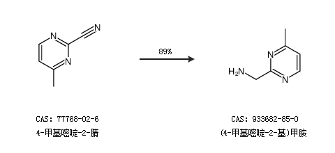 1.通过4-甲基嘧啶-2-腈合成(4-甲基嘧啶-2-基)甲胺,收率约89%;