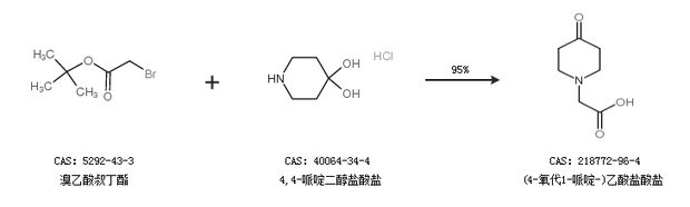 1.通过溴乙酸叔丁酯和4,4-哌啶二醇盐酸盐合成(4-氧代1-哌啶-)乙酸盐酸盐,收率约95%;