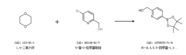 2.通过1,4-二氧六环和5-溴-2-羟甲基吡啶合成(5-(4,4,5,5-四甲基-1,3,2-二噁硼烷-2-基)吡啶-2-基)甲醇