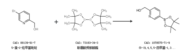 1.通过5-溴-2-羟甲基吡啶和联硼酸频那醇酯合成(5-(4,4,5,5-四甲基-1,3,2-二噁硼烷-2-基)吡啶-2-基)甲醇