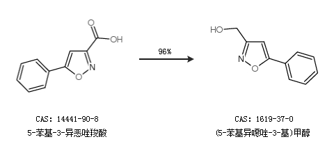 2.通过5-苯基-3-异恶唑羧酸合成(5-苯基异噁唑-3-基)甲醇,收率约96%;