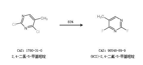 1.通过2,4-二氯-5-甲基嘧啶合成(9CI)-2,4-二氟-5-甲基嘧啶,收率约83%;