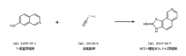1.通过7-氨基异喹啉和硫氰酸钾合成(9CI)-噻唑并[4,5-h]异喹啉-2-胺