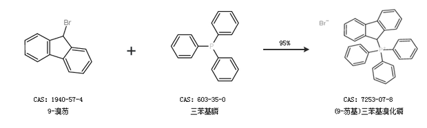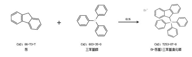 1.通过9-溴芴和三苯基膦合成(9-芴基)三苯基溴化磷,收率约95%;