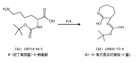 1.通过N-(叔丁氧羰基)-D-赖氨酸合成(R)-(2-氧代氮杂环庚烷-3-基)氨基甲酸叔丁酯,收率约91%;