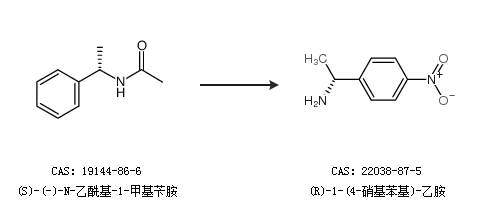 1.通过(S)-(-)-N-乙酰基-1-甲基苄胺合成(R)-1-(4-硝基苯基)-乙胺