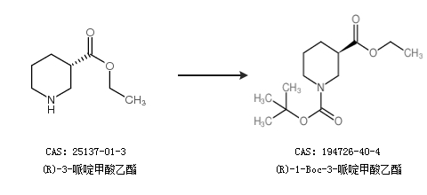 2.通过(R)-3-哌啶甲酸乙酯合成(R)-1-Boc-3-哌啶甲酸乙酯
