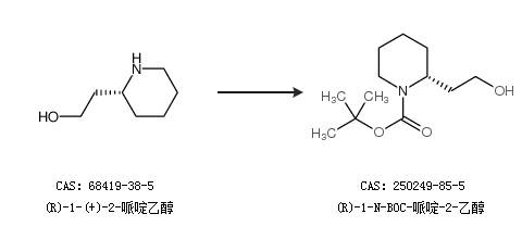 2.通过(R)-1-(+)-2-哌啶乙醇合成(R)-1-N-BOC-哌啶-2-乙醇
