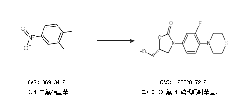 2.通过3,4-二氟硝基苯合成(R)-3-(3-氟-4-硫代吗啉苯基)-5-(羟基甲基)噁唑啉-2-酮