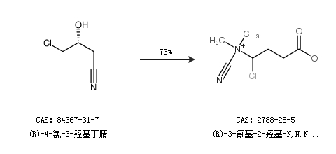 2.通过(R)-4-氯-3-羟基丁腈合成(R)-3-氰基-2-羟基-N,N,N-三甲基-1-丙铵氯化物,收率约73%;