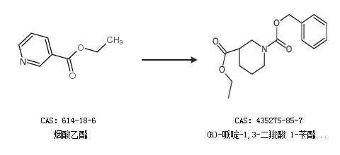 1.通过烟酸乙酯合成(R)-哌啶-1,3-二羧酸 1-苄酯 3-乙酯