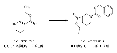 2.通过1,4,5,6-四氢吡啶-3-羧酸乙酯合成(R)-哌啶-1,3-二羧酸 1-苄酯 3-乙酯
