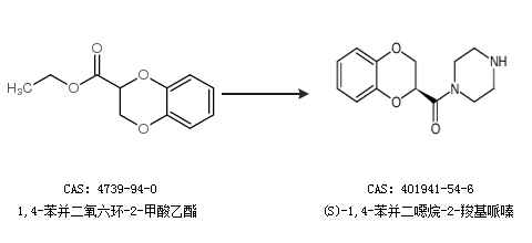 2.通过1,4-苯并二氧六环-2-甲酸乙酯合成(S)-1,4-苯并二噁烷-2-羧基哌嗪