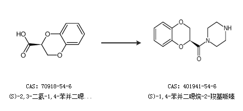 1.通过(S)-2,3-二氢-1,4-苯并二噁英-2-羧酸合成(S)-1,4-苯并二噁烷-2-羧基哌嗪
