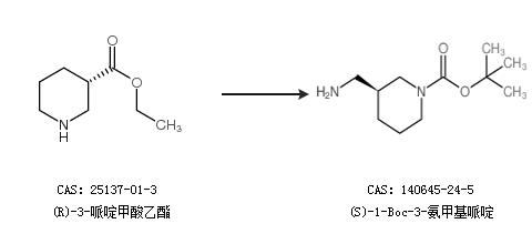 2.通过(R)-3-哌啶甲酸乙酯合成(S)-1-Boc-3-氨甲基哌啶