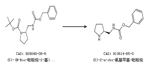 1.通过(S)-(N-Boc-吡咯烷-2-基)-N-Cbz-甲胺合成(S)-2-n-cbz-氨基甲基-吡咯烷