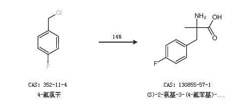 1.通过4-氟氯苄合成(S)-2-氨基-3-(4-氟苯基)-2-甲基丙酸,收率约14%;