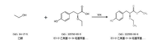 1.通过乙醇和(S)-2-乙氧基-3-(4-羟基苯基)-丙酸合成(S)-2-乙氧基-3-(4-羟基苯基)丙酸乙酯,收率约93%;