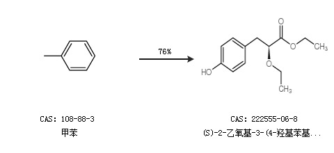 2.通过甲苯合成(S)-2-乙氧基-3-(4-羟基苯基)丙酸乙酯,收率约76%;