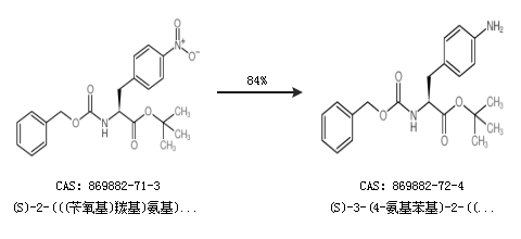1.通过(S)-2-(((苄氧基)羰基)氨基)-3-(4-硝基苯基)丙酸叔丁酯合成(S)-3-(4-氨基苯基)-2-(((苄氧基)羰基)氨基)丙酸叔丁酯,收率约84%;