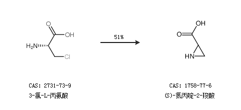 2.通过3-氯-L-丙氨酸合成(S)-氮丙啶-2-羧酸,收率约51%;
