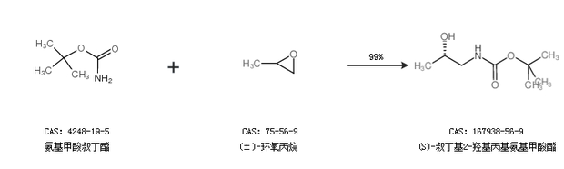 1.通过氨基甲酸叔丁酯和(±)-环氧丙烷合成(S)-叔丁基2-羟基丙基氨基甲酸酯,收率约99%;