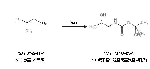2.通过S-1-氨基-2-丙醇合成(S)-叔丁基2-羟基丙基氨基甲酸酯,收率约99%;