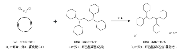 1.通过(1,5-环辛二烯)二氯化钯(II)和1,2-双(二环己基磷基)乙烷合成[1,2-双(二环己基膦)乙烷]氯化钯(II),收率约91%;