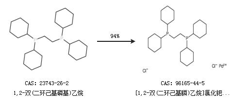 2.通过1,2-双(二环己基磷基)乙烷合成[1,2-双(二环己基膦)乙烷]氯化钯(II),收率约94%;