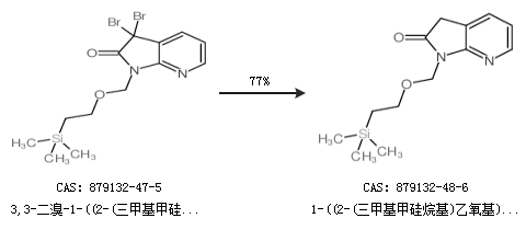 1.通过3,3-二溴-1-((2-(三甲基甲硅烷基)乙氧基)甲基)-1H-吡咯并[2,3-b]吡啶-2(3h)-酮合成1-((2-(三甲基甲硅烷基)乙氧基)甲基)-1H-吡咯并[2,3-b]吡啶-2(3H)-酮,收率约77%;
